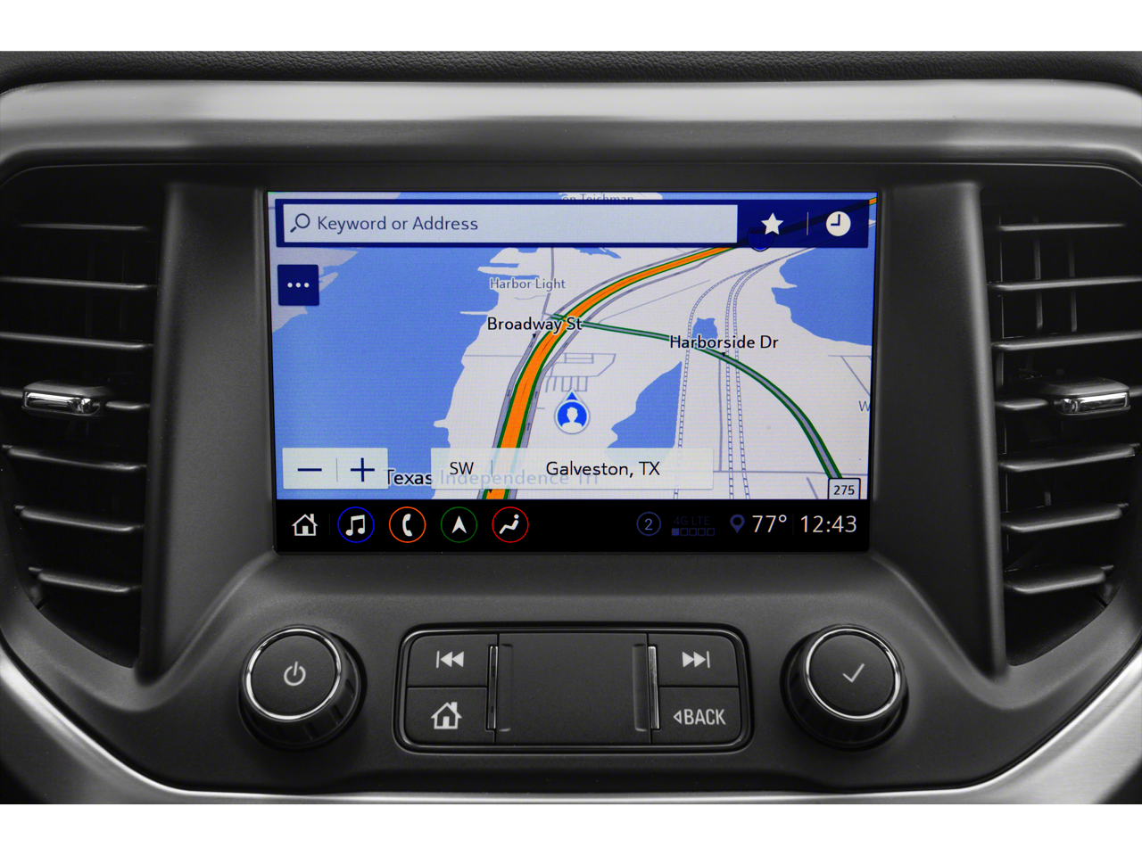 - Audio system, 8" diagonal GMC Infotainment System with Navigation includes multi-touch display, AM/FM/SiriusXM stereo, Bluetooth streaming audio for music and most phones, Android Auto and Apple CarPlay capability for compatible phones, advanced voice recognition, in-vehicle apps, personalized profiles for infotainment and vehicle settings (Standard on models built after September 23rd, 2019)
