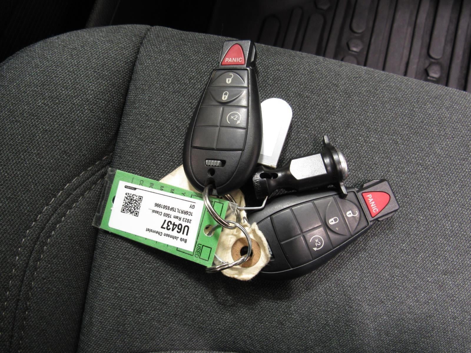CarBravo Certified! - passed a rigorous multi-point inspection, comes with a 12-mo/12k-mile limited warranty (plus any remaining factory warranty), a CARFAX report, 24/7 roadside assistance, and a 10-day/500-mile exchange This 2023 Ram 1500 Classic Warlock is available exclusively at the The Bob Johnson Pre-Owned Certified Collection 4552 W Ridge, Rochester, NY 14626. You can connect with us by calling (585) 339-2731. 2023 Ram 1500 Classic Warlock Stock Number: U6437 Driven 22,946 Miles In a Granite Crystal Metallic Exterior complimented by a Black Interior. Vin Number: 1C6RR7LT5PS581996 Electronics Convenience Group ($995 value)Auto-Dimming Rearview MirrorA/C with Dual-Zone Automatic Temperature ControlGoogle Android AutoUSB Mobile Projection8.4" TouchscreenApple CarPlay CapableSiriusXM Satellite RadioMedia Hub with 2 USB and Auxiliary Input JackSiriusXM Guardian-Included TrialIntegrated Centre Stack RadioUconnect 5 with 8.4" Display RadioHumidity SensorLuxury GroupOverhead Console/garage Door OpenerSun Visors with Illuminated Vanity MirrorsAuto-Dimming Rearview MirrorAuto-Dimming Exterior Driver MirrorBlack Power Fold Heated Mirrors with Signals7" Customizable In-Cluster DisplayExterior Mirrors with Turn SignalsExterior Mirrors with Courtesy LampsPower Folding Exterior MirrorsRear Dome Lamp with On/off SwitchLED Bed LightingSteering Wheel-Mounted Audio ControlsLeather-Wrapped Steering WheelUniversal Garage Door OpenerUtility GroupProtection Group ($250 value)Full-Size Spare TireTow HooksTransfer Case Skid Plate ShieldFront Suspension Skid PlateWarlock Decor Package ($395 value)Warlock DecalSport Performance Hood DecalHeated Seats and Wheel Group ($595 value)Front Heated SeatsHeated Steering WheelHumidity SensorTrailer Tow Mirrors and Brake Group ($530 value)Black Power Trailer Tow MirrorsClass IV Hitch ReceiverTrailer Brake ControlQuick Order Package 26F Warlock ($2,995 value)Warlock PackageSport Tail LampsDedicated Daytime Running LightsBi-Function Halogen Projector HeadlampsBlack Exterior BadgingBlack RAM's Head Tailgate BadgeBlack Powder-Coated Rear BumperBlack Powder-Coated Front BumperBlack Headlamp Filler PanelBlack Grille with RAM LetteringFront Wheel Well LinersBlack Wheel FlaresB-Pillar Black-OutBlack 5.7L Hemi BadgeBlack 4x4 BadgeRear Heavy-Duty Shock AbsorbersP275/60R20 BSW All-Season TiresSemi-Gloss Black Wheel Centre Hub20" X 9" High-Gloss Black Aluminum WheelsPark-Sense Rear Park Assist SystemWarlock Interior AccentsRaised Ride HeightQuick Order Package 29F Warlock ($2,995 value)Warlock PackageSport Tail LampsDedicated Daytime Running LightsBi-Function Halogen Projector HeadlampsBlack Exterior BadgingBlack RAM's Head Tailgate BadgeBlack Powder-Coated Rear BumperBlack Powder-Coated Front BumperBlack Headlamp Filler PanelBlack Grille with RAM LetteringFront Wheel Well LinersBlack Wheel FlaresB-Pillar Black-OutBlack 4x4 BadgeRear Heavy-Duty Shock AbsorbersP275/60R20 BSW All-Season TiresSemi-Gloss Black Wheel Centre Hub20" X 9" High-Gloss Black Aluminum WheelsPark-Sense Rear Park Assist SystemWarlock Interior AccentsRaised Ride Height Comfort The steering wheel rim is heated. Heated seats offer cool weather comfort by warming the seat quickly, before the air in the passenger compartment is fully warmed by the heater. The seating surfaces are covered in cloth.Technology and Telematics Without the need for a manufacturer specific app to be installed on the smart device, the vehicle infotainment system can access and control functions of a smart device physically plugged-into the vehicle. Otherwise known as Bluetooth®, this technology allows electronic devices to integrate with the vehicle systems without the need for a physical connection between them. Bob Johnson Certified Collection is a stand-alone, pre-owned facility that rivals many franchise dealers' facilities. The selection and reconditioning process is unmatched and has set a new standard for pre-owned dealers entirely. Only the best-of-the-best qualify for o